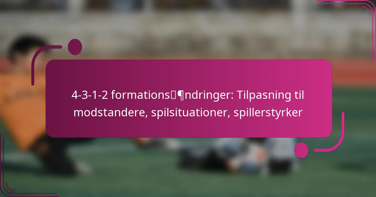 4-3-1-2 formationen kan effektivt tilpasse sig forskellige modstandere ved at analysere deres styrker og svagheder, justere spillerroller og ændre formationsformen efter behov. Denne fleksibilitet giver hold mulighed for at optimere deres strategier baseret på de specifikke udfordringer, der præsenteres af forskellige kampsituationer.